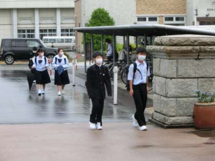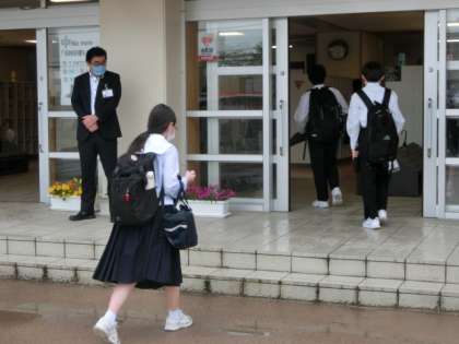 今日から、分散登校が始まりました。密を避けての登校となりました。再会を喜ぶあまりハグしそうになり、途中で気付いて立ち止まるという光景も見られました。生徒同様、教職員も再会を喜んでおります。