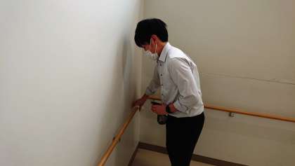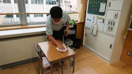 生徒が下校した後、教室や廊下、階段等、生徒が触れたであろう場所をアルコール消毒しています。明日以降も、安心して登校してください。