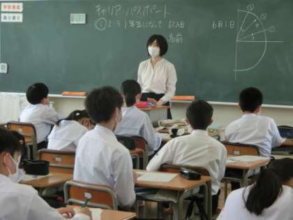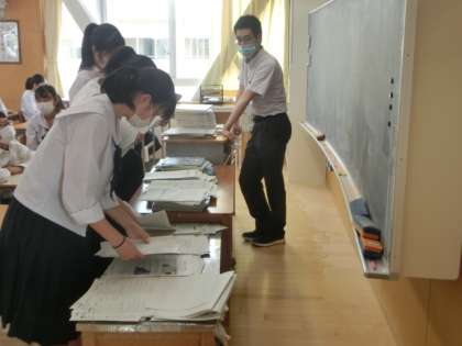 5限は、全クラス学級活動でした。3年生は、大量の課題を集めました(上段)。2年生は、学級目標を決めました(中段)。1年生は、キャリア・パスポートを用いて進路学習を行いました(下段)。