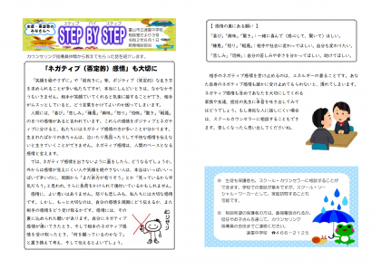 相談室だより第3号(6月)をアップしました。今回は、「ネガティブ(否定的な)感情も大切に」という、今のような苦しい状況にピッタリな話を紹介しています。
