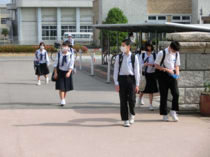 速中生は、今朝も元気に登校しました。玄関では、爽やかな挨拶の声が飛び交っていました。