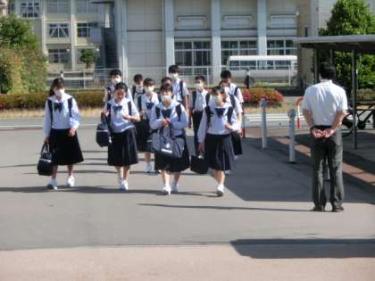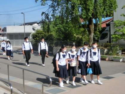 今日から50分授業再開です。速中生は、今朝も元気に登校しました。