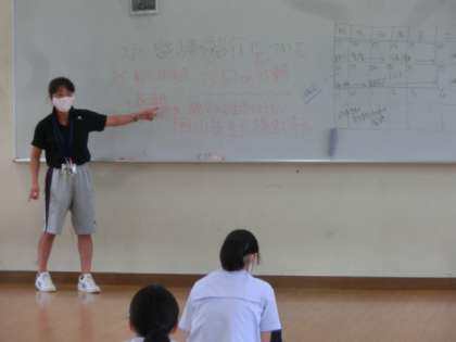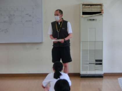 昨日の部活動再開の案内を受け、昼休みに部長会を行いました。部活動担当と生徒指導主事から、来週の部活動見学・仮入部のために必要な掲示物の説明を受けました。