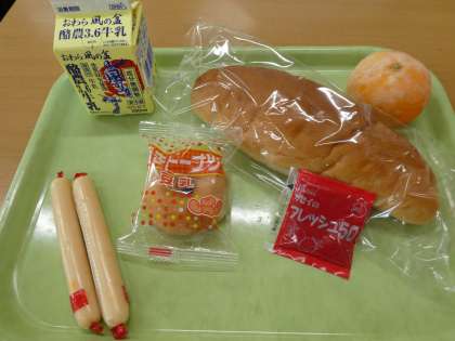 今日の給食は牛乳・チーズかまぼこ・コッペパン・いちごジャム・焼きドーナツ・冷凍ミカンでした。今日はジメジメして蒸し暑かったので冷凍ミカンがとても美味しかったです。