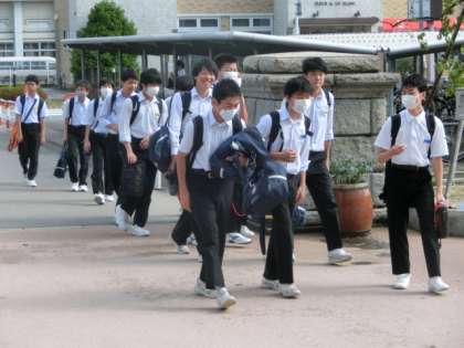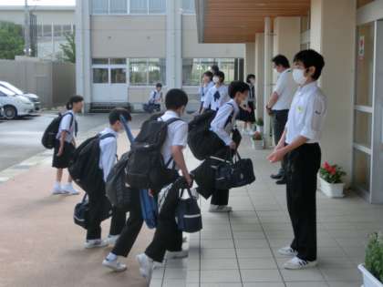夏服完全移行、部活動再開初日。部活の道具を手にする生徒も、そうでない生徒も元気に登校しました。