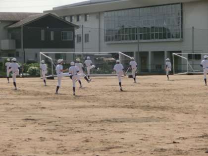 今日から、部活動を再開しました。どの部も怪我や熱中症に気を付けながら、安全に活動しました。梅雨の合間の晴天だったので、今日は外部を紹介します(上:野球部、中:サッカー部、下:陸上競技部)。