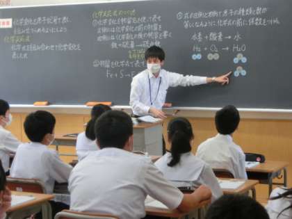 中段は、2年の理科です。化学反応式を元子記号で表しました。