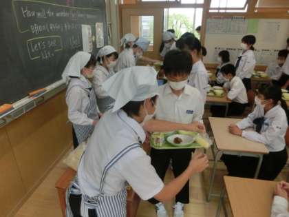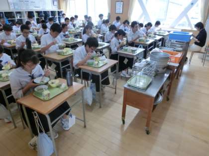 今日から、「配膳しやすい給食」が始まりました。久しぶりに「お米」が食べられると楽しみにしていた人(生徒?教員?)も大勢いました。