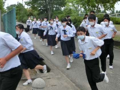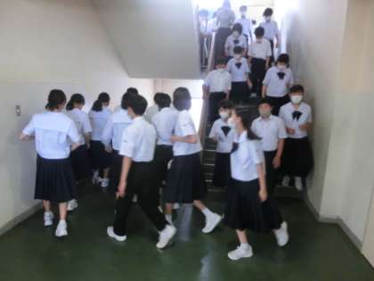 1,3年生は5限に、2年生は6限に避難訓練を行いました。体育館建て替え工事中につき、グラウンドの一番奥まで避難しました。