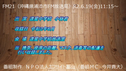 6月22日(月) 先週金曜日にFM21【沖縄県浦添市FM放送局】で放送された番組を、お昼の校内放送で紹介しました。