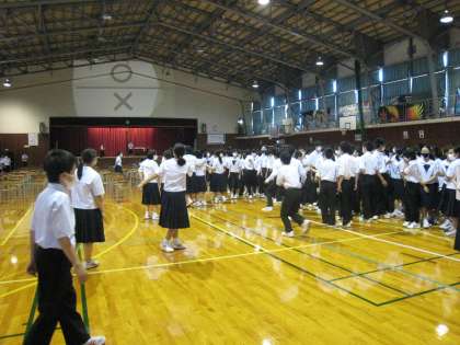 最後にレクリエーションとして、密にならないように配慮をした上で、学年全体で○×クイズを行いました。生徒も教員も楽しめる素敵な時間となりました。