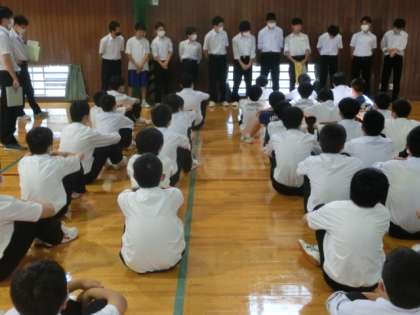 部員の自己紹介、顧問の自己紹介と指導方針説明、年間活動計画の説明等を行い、令和2年度速星中学校新体制での部活動が遂に始まりました。