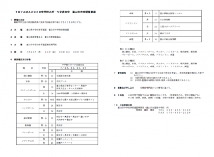 「TOYAMA2020中学校スポーツ交流大会 富山市大会」開催要項