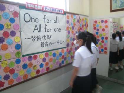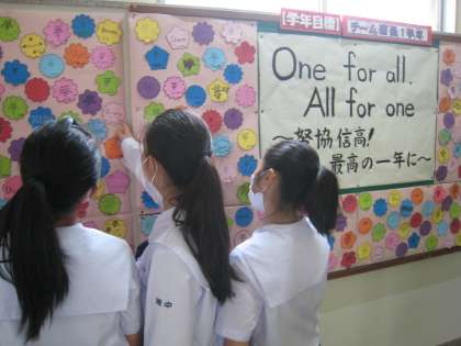 1学年の学年目標を掲示しました。朝から、何人もの生徒が足を止め、学年目標を見ていました。