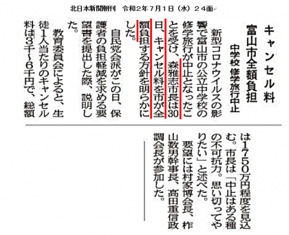 今朝の北日本新聞の朝刊に、富山市キャンセル料全学負担の方針の記事が掲載されています。