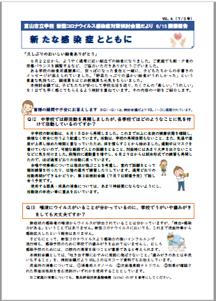 7月3日(金)、富山市立学校 新型コロナウイルス感染症対策検討会議だより VOL.4(7/3号)を発行しました。