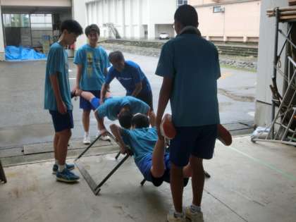 あいにくの雨でしたが、校舎内では多くの運動部が汗を流していました(上段:陸上競技部、中段:ソフトボール部、下段:バドミントン部)。