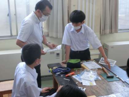 7月8日(水) 授業風景 公開日 2020/07/08 更新日 2020/07/08 全学年 上段は、1年の技術です。運動を変化させる仕組みを制作しています。 中段は、2年男子の体育です。バスケットボールを学習しています。 下段は、3年の数学です。素因数分解について学習しました。