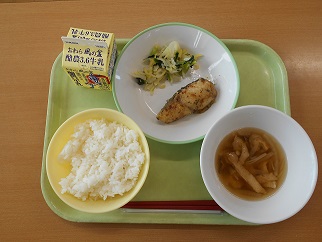 今日の給食は、牛乳・ご飯・魚のごま味噌かけ・あわせあえ・沢煮椀でした。魚のごま味噌あえは、魚の白身にゴマの風味豊かな味噌が絡め合うことで極上の一品でした。ごぼうや人参のだしがしみ込んだ沢煮椀は、とても滋味でした。