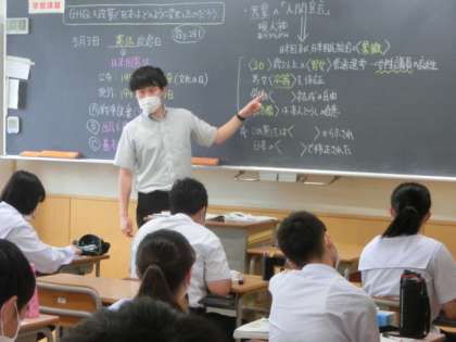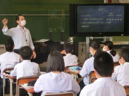 7月9日(木) 授業風景 公開日 2020/07/09 更新日 2020/07/09 全学年 上段は、1年の音楽です。「浜辺の歌」で楽譜の読み方について学習しました。 中段は、2年の国語です。漢字の成り立ちについて学習しました。 下段は、3年の社会です。GHQの政策による日本の変化について学習しました。