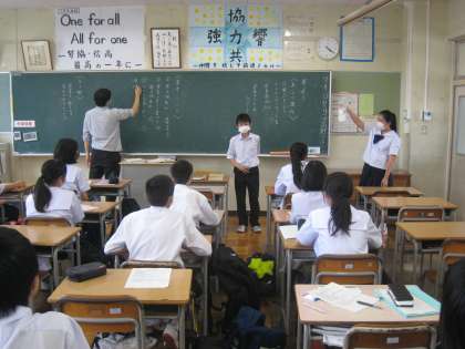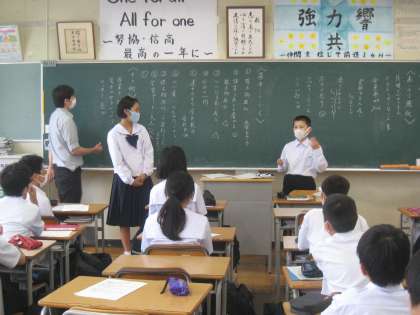 7月10日(金) 1年 学年生徒会 公開日 2020/07/10 更新日 2020/07/10 1年生 放課後、1学年生徒会を行いました。今日は、1学期の振り返りとして「あいさつ強化週間」「苦手克服週間」を振り返りました。