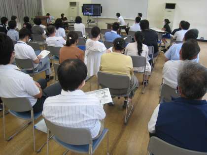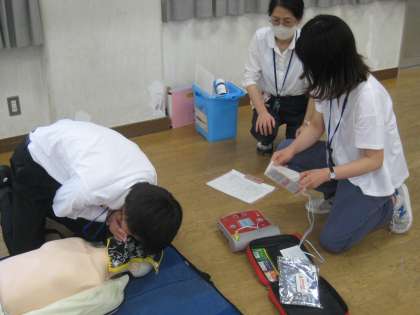 7月13(月) 校内研修会 公開日 2020/07/13 更新日 2020/07/13 全学年 放課後、校内研修会を行いました。救命救急や食物アレルギーの対応についてDVDを視聴し(上段)、養護教諭の講義を受けました。その後、心肺蘇生の実技実習を行い(中段)、嘔吐物の処理についても説明を受けました(下段)。