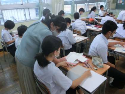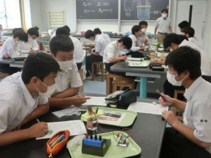 7月14日(火) 授業風景 公開日 2020/07/14 更新日 2020/07/14 全学年 上段は、1年の美術です。イメージを模様で表現するデザインを作成中です。 中段は、2年の国語です。バイオロギングの可能性とはどういうことか考えました。 下段は、3年の理科です。水溶液から電流を取り出す実験を行いました。