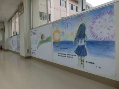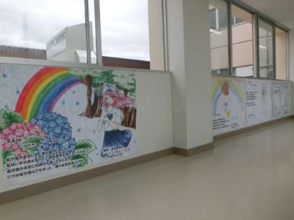 2F中央渡り廊下には、文化委員会による「学校キラキラプロジェクト」の作品が掲示されています。今回のテーマは「梅雨」と「夏」です。力作ぞろいなので、ぜひ足を止めて見てみてください。