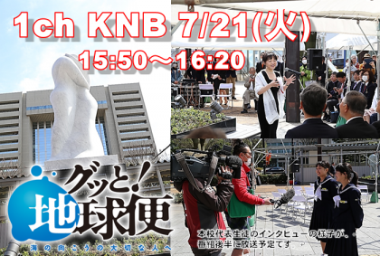 本校卒業生でアーティストの吉野美奈子さんが制作されたモニュメント「ラバーズ」について特集された番組「グッと!地球便」がKNBで7月21日(火)15:50〜16:20に放送されます。