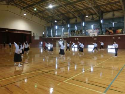 7月17日(金) 速中応援団 朝練習 公開日 2020/07/17 更新日 2020/07/17 3年生 来週月曜日の壮行会本番に向け、今朝は会場である体育館でリハーサルを行いました。位置取りや入退場等、デビュー戦に向け万全の準備を行いました。