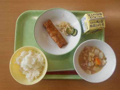 今日の給食は、ご飯・牛乳・春巻き・切干大根のサラダ・南蛮煮でした。