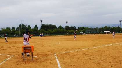 ソフトボールは、試合前のシートノックです。速星は山室中との合同チームで、大沢野中学校と対戦します。間もなくプレイボールです。