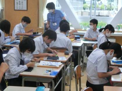 中段は、2年の家庭科です。刺し子トートバッグを製作しています。