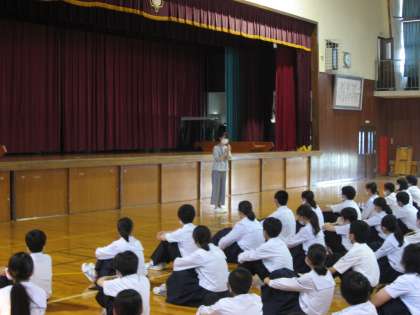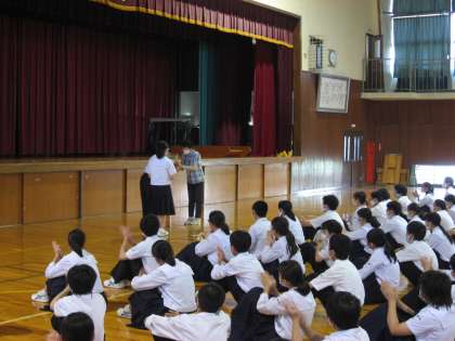 離任式と着任式は、昼の放送にて実施済みでしたが、直接お世話になったということで、2年生は学年集会の場を設け、坂本先生に感謝の意を伝えました(上段)。