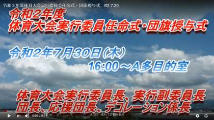 令和2年度体育大会実行委員会任命式・団旗授与式の動画を、「生徒・保護者ページ」に掲載しました。