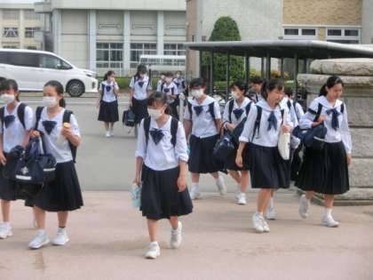 梅雨明け一発目の登校。ジリジリとした暑さの中、生徒たちは汗を絞りながら登校しました。