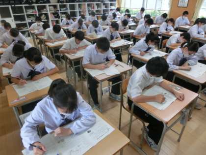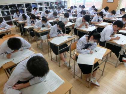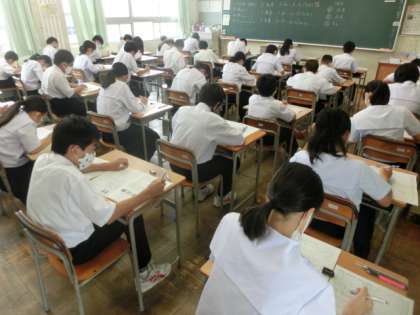 期末考査は2日目。1年生の無監督テストも2日目。もう、慣れたものです(上段:1年、中段:2年、下段:3年)。