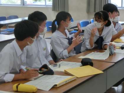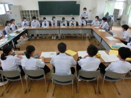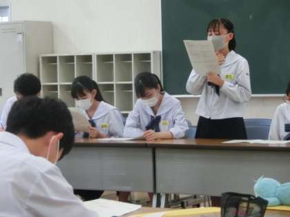 生徒議会の後、体育大会の団長会議を行いました(上段)。実行委員長の大岩さんが大枠を説明(中段)し、各団で質問や意見を出し合いました(下段)。