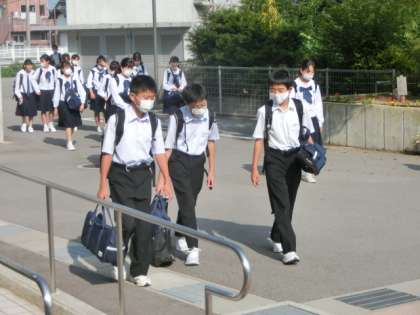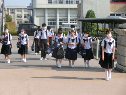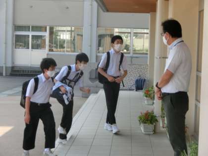学校に到着してホッとしてか、思わず「あっち〜!」という大きな独り言が出てしまう生徒も大勢いました。