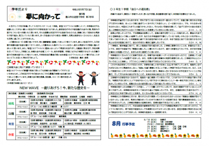 8月8日(土) 配布文書 3学年だより