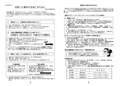 夏休みも、後半戦のスタートです。コロナや熱中症だけでなく、様々なトラブルを回避できるよう、今一度しおりに記載されていることを復習しましょう。