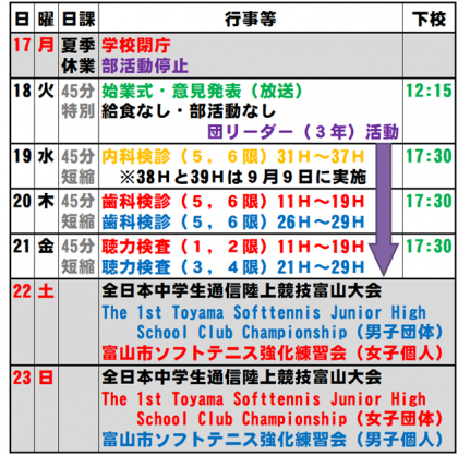 8月16日(日) 週予定