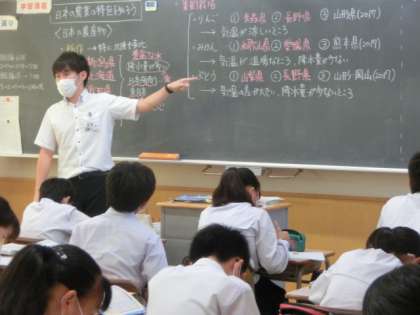中段は、2年の社会です。日本の農業の特色について学習しました。