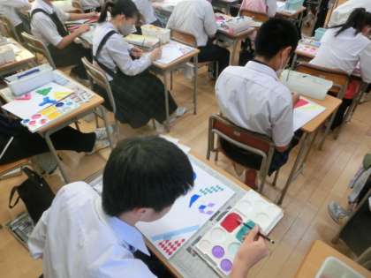 下段は、3年の美術です。錯視を用いてデザインを作成しています。