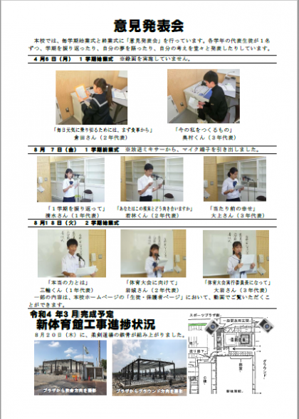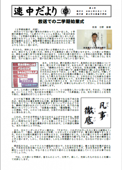 8月21日(金)、学校だより第4号(8月号)を発行しました。本日生徒に配布されます。