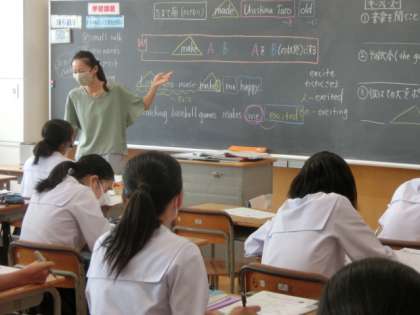 8月25日(火) 授業風景 公開日 2020/08/25 更新日 2020/08/25 全学年 上段は、1年の理科です。酸素と二酸化炭素の違いについて学習しました。 中段は、2年の音楽です。パート分けをして音取りを始めました。 下段は、3年の英語です。make+人+形容詞の構文について学習しました。