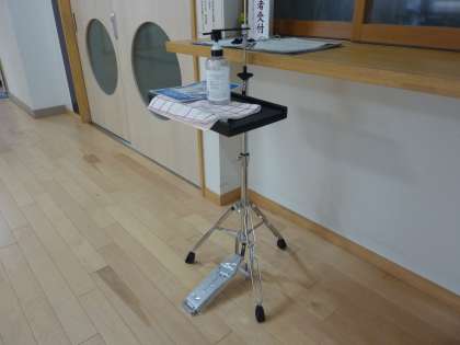 3)事務室前に消毒液を設置しております。手指の消毒をお願いします。