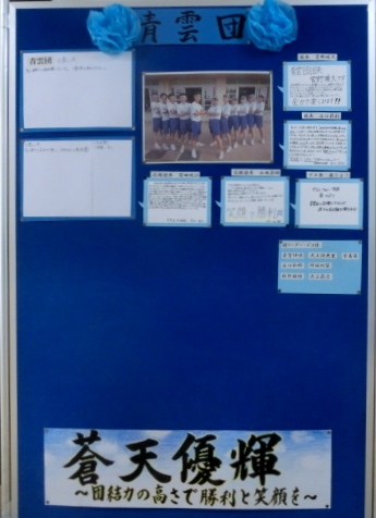 写真中段は青雲団、下段は緑風団の掲示板です。