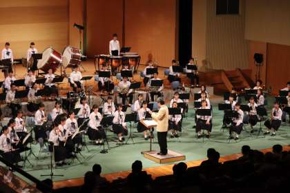 定期演奏会第一部は、課題曲やクラシックなどを中心に演奏しました。吹奏楽部顧問の高木教諭や、昨年度まで顧問だった井澤教諭による指揮でお送りしました。