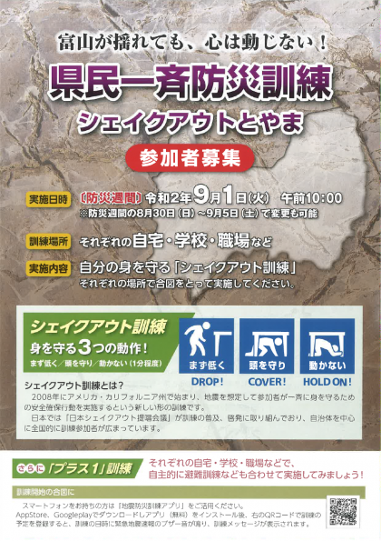 9月1日(火) 県民一斉防災訓練「シェイクアウトとやま」